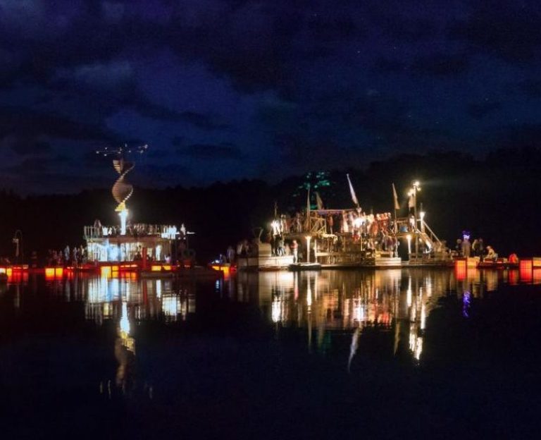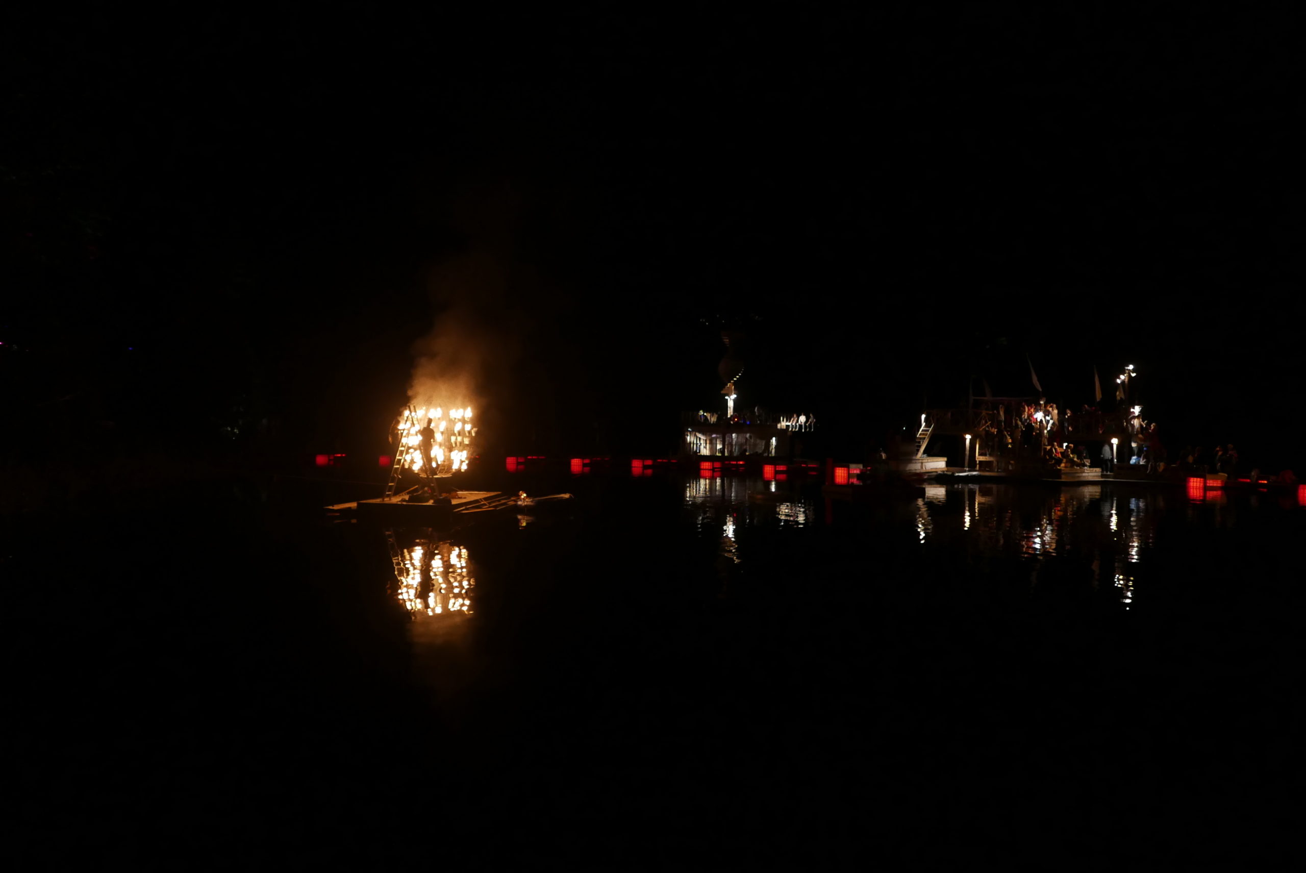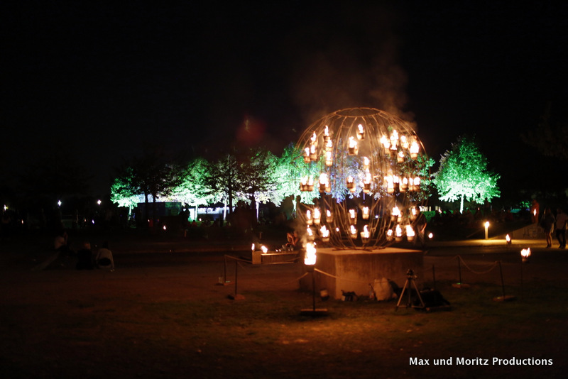 Die “Feuergarten”-Installation lädt die Gäste in eine performative Welt voller Feuer, Theater und Funken ein.